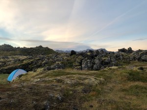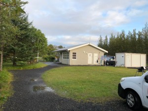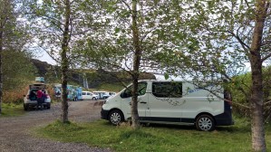 This campground sits behind the Hverinn restaurant and small store. I think there were a total of 5 campers there when we were, making it very quiet and enjoyable. I did not shower here, so I cannot report on the conditions of the showers. The women’s bathroom has the washer/dryer, and was heated and very clean. We did laundry here, and the dryer never did dry our clothes (it also appeared to be older than the 1980s). We prepared our dinner on the outdoor patio area of the restaurant, and the owner came out to chat… such a nice guy! There are trees and bushes and grass parking areas.