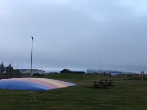 This campground is behind the sports center (recreation center), and reception is located in the sports center. This is also where the showers are located, so they can only be accessed during opening hours. No shoes are allowed in the sports center, and the facilities are very very clean. There are not private shower stalls for those who might care, but they are gender specific obviously. There are bathroom facilities that are accessible 24/7. It has a big bounce pad which is a lot of fun! This was a very quiet campground, but then again, it was end of season. Though online sources said closing was August 31st, we arrived on September 7th and they were still open (I had tried emailing them earlier in the year and never received a response). We had an interesting experience with some bored local children, but they were pretty harmless. The campground looked out over the fjord, which was a beautiful sight.