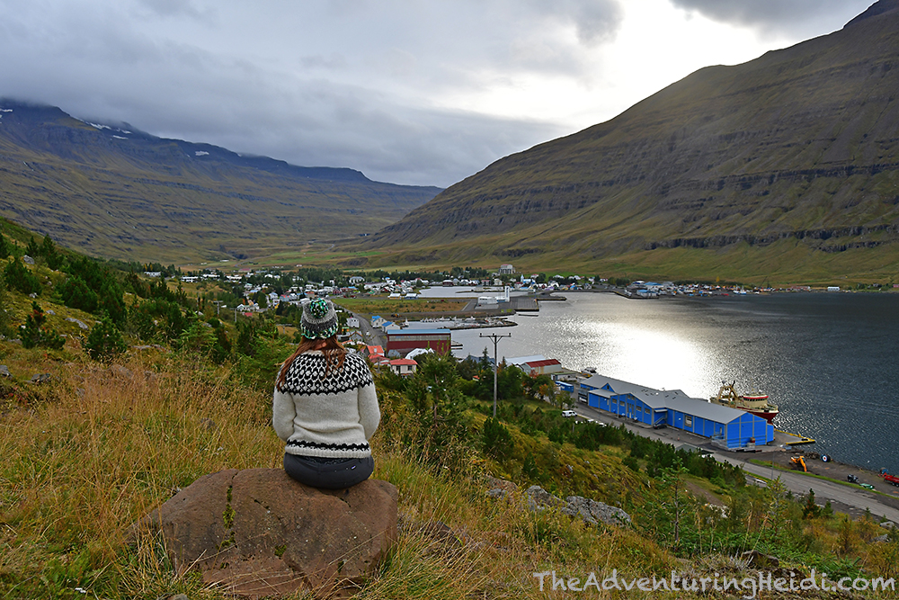 The hike down from the falls gives great panoramic views of Egilsstaðir and Lagarfljót. All in total, we hiked 2.1 miles and took about 1 hour 15 minutes total to explore the waterfall. After changing out of our rain gear, we enjoyed a quick lunch before heading back up Road 93 towards Seyðisfjörður.