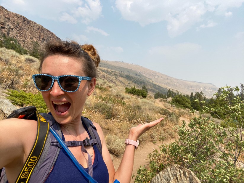 I strapped on my hiking boots and pack, and grabbed my camera and set out on the hike. Sadly it was quite hazy from the wildfire smoke, but that would just all be about making lemonade out of the whole western U.S. being on fire.