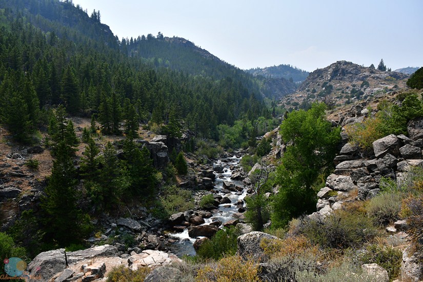 Into the thick wildfire smoke I drove, which obscured the landscape. Hours and hours went by, and I grew antsy just to get to my destination. I decided to make a quick pit stop at Split Rock off of US Highway 287, as there are restrooms and nice views to take in while I stretched my legs.