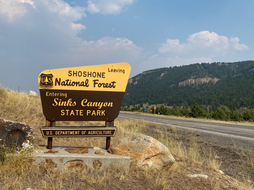 I stopped briefly at the Sinks Canyon State Park Visitors Center, picking up one of the free Wyoming tourism decals, and checked out this year’s winners of the annual photo contest. Sinks Canyon gets its name from the mysterious feature “The Sinks,” which is where the Popo Agie River disappears underground for hours before appearing further down the canyon about a quarter of a mile at “The Rise.” It is still a mystery how this all happens, as dye tests only tell a bit of the story, as it shouldn’t theoretically take hours for the water to reappear at that distance. Definitely worth a stop to see, and there’s parking at both The Sinks and The Rise.