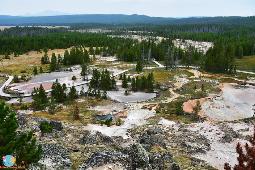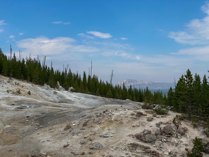Monument Geyser Basin offered great views, but I found to be kind of underwhelming in terms of the actual thermal features. You couldn’t get close to the features (understandably as they didn’t build boardwalks up here and thin crust is always a danger in thermal areas), and it’s not a highly active thermal area. Still good if you’re looking to get away from crowds (I think I shared the area with six others) and want to get in your stair climbing for the day, or want to see some spectacular views of the surrounding area and mountains.