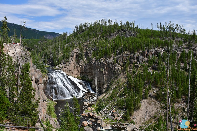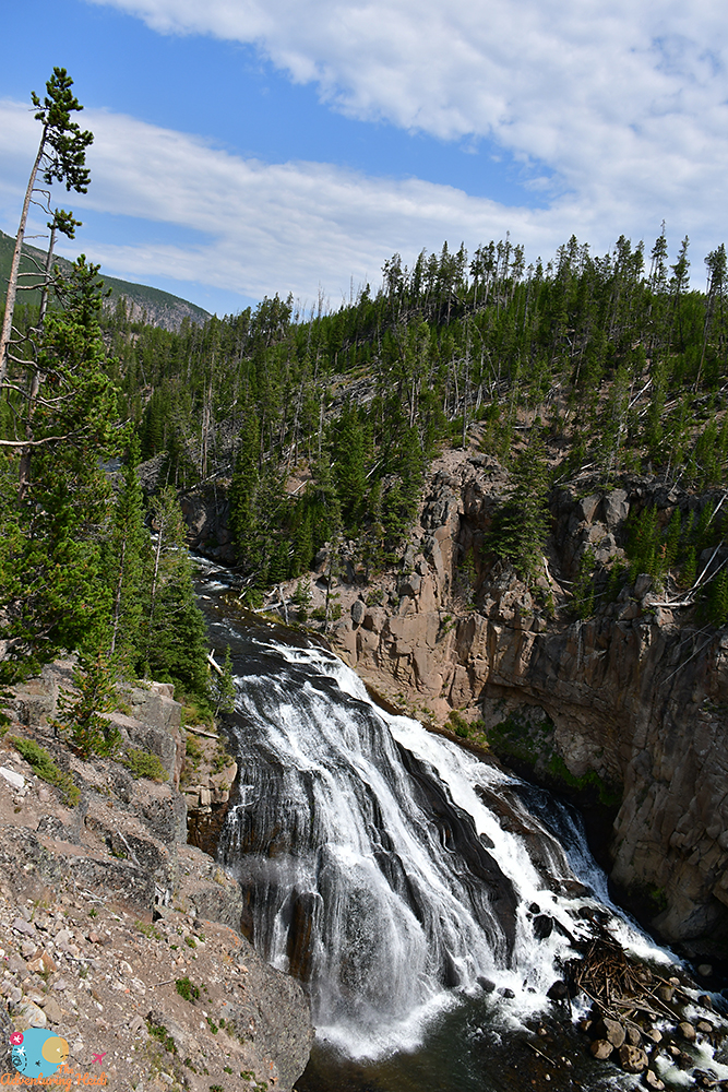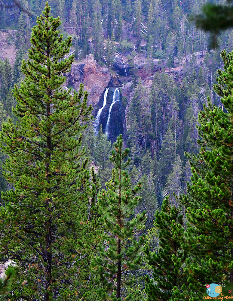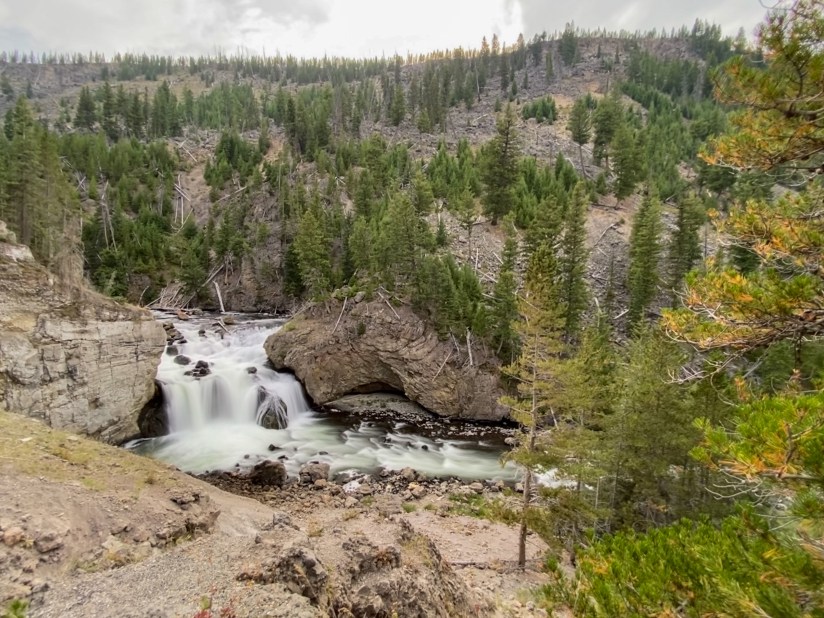 Gibbon Falls is a very popular stop, and has a large parking lot, and is created by the Gibbon River flowing over a wall of the Yellowstone Caldera. There’s an upper view point, but walking a bit down to the lower viewpoint is well worth it, and is much easier to take photos from. Fifth waterfall of the day, and it was a good one! (At least I can count the waterfalls I chase, the geysers and hot springs are hopeless to keep track of!)