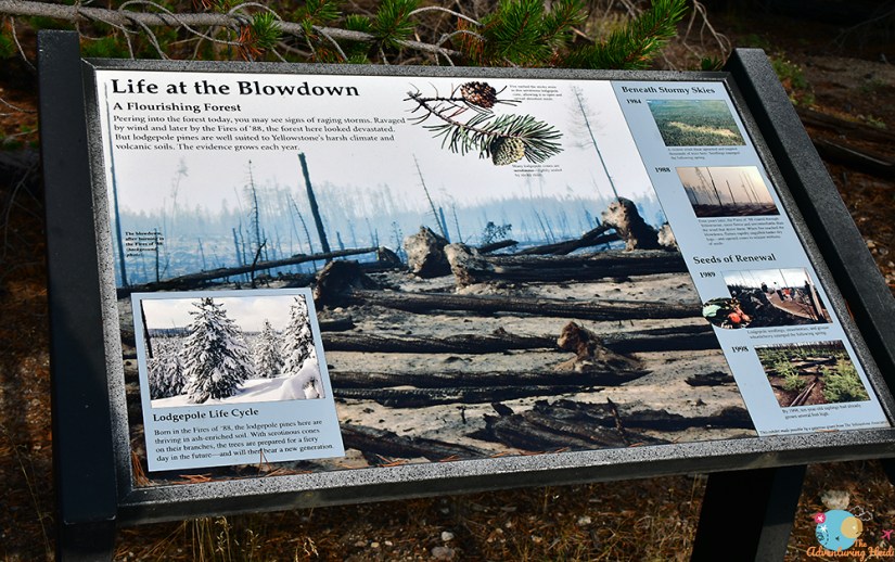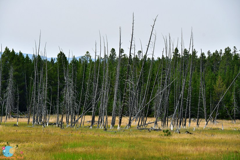 I headed out towards Norris Geyser Basin, but the trip took longer because I kept finding things to stop at. Yellowstone is filled with small hidden gems that the masses overlook as they hurry from major sight to major sight. I drove the one way loop for the Virginia Cascade and stopped at the “Blowdown,” which I must admit I only stopped at because I saw a boardwalk leading into the woods (because that sounds like the start of a good horror movie – she followed the lonely boardwalk into the dense forest…). The Blowdown actually ended up being pretty unique to see, as my photo captions will describe below.