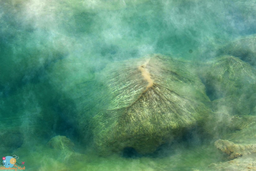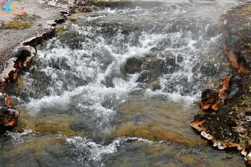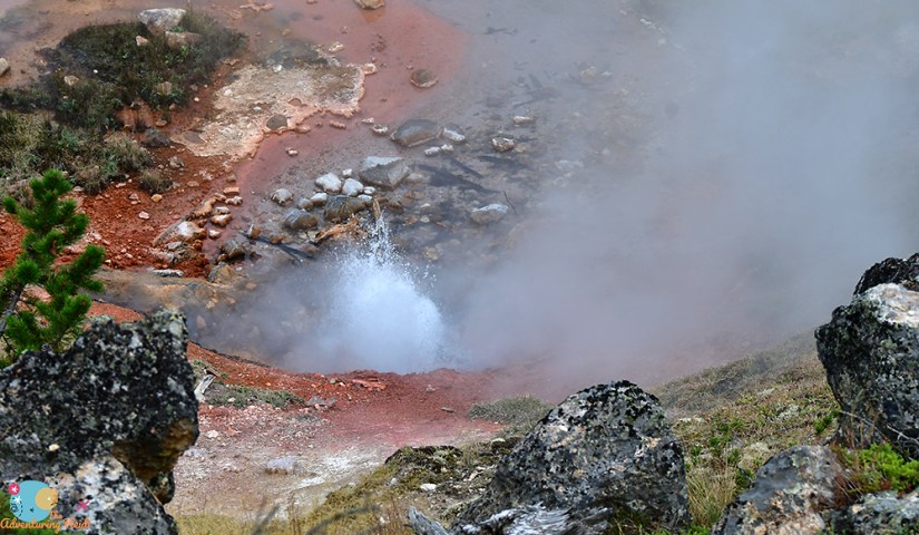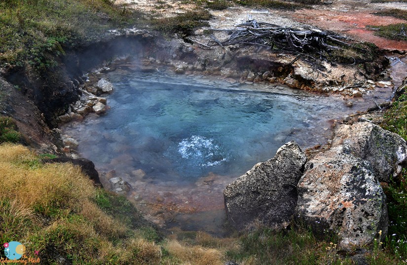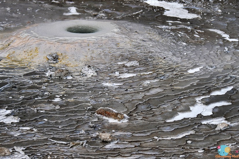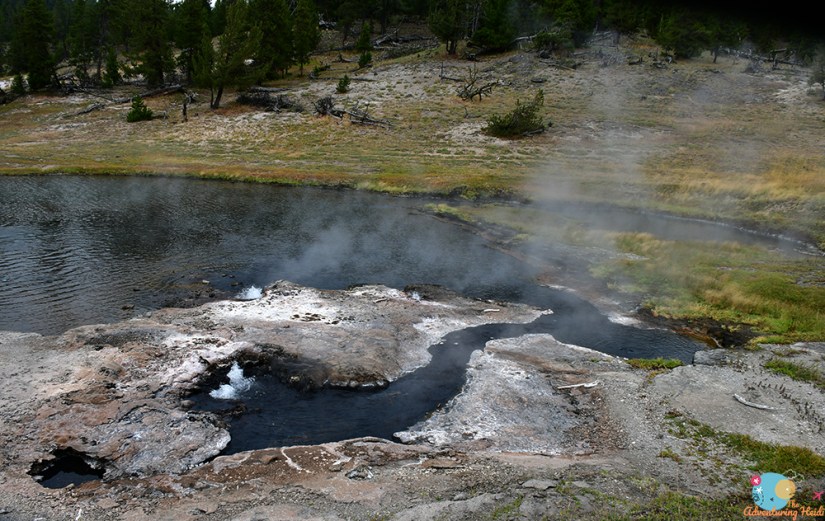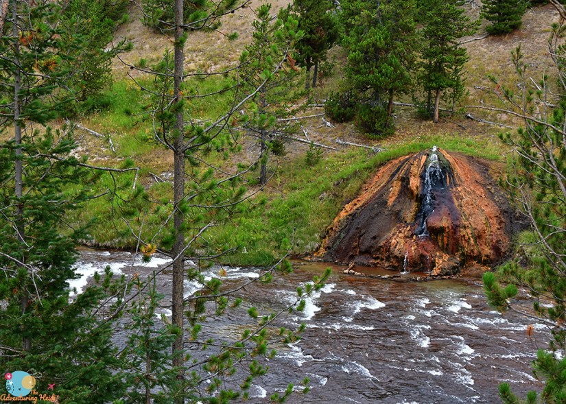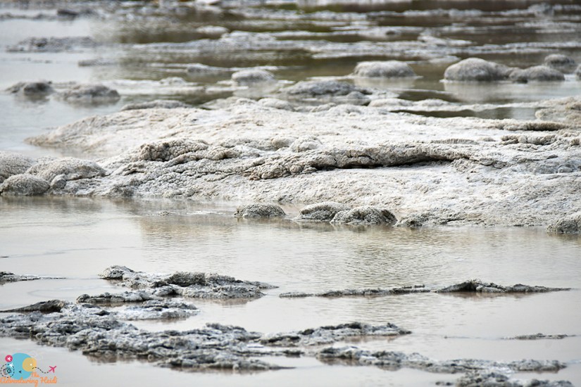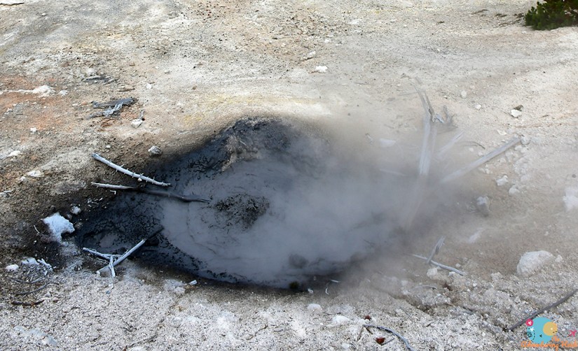 Whew, what an amazing 2.6 mile walk! I grabbed my passport stamp from the bookshop, made my way through the crowded parking lot filled with cars circuling trying to find a spot, and headed out. My geothermal dreams weren’t over yet, as just down the road was Chocolate Pots, an oft ignored roadside thermal feature on the banks of the Gibbon River. I don’t believe it is marked, but it is on Google Maps, and there is a large pull out where you can safely park.