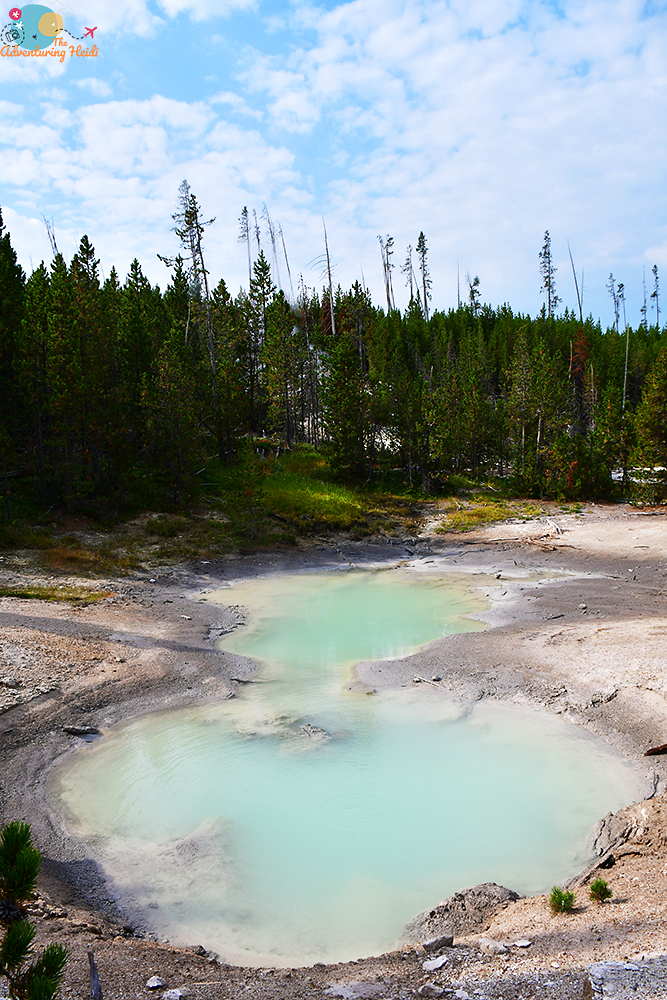 Artists’ Paint Pots, a glorious hill of bubbling mud pots and geysers was the next stop. This is a popular stop, and the parking lot is small so I think I had to do about three or four laps before I was able to snag an open parking spot. Ahhh, the joys of Yellowstone at peak hours! Nevertheless, I was soon on my way to all the bubbling mud goodness! Seriously, mud pots are some of my favorite things ever in the world!