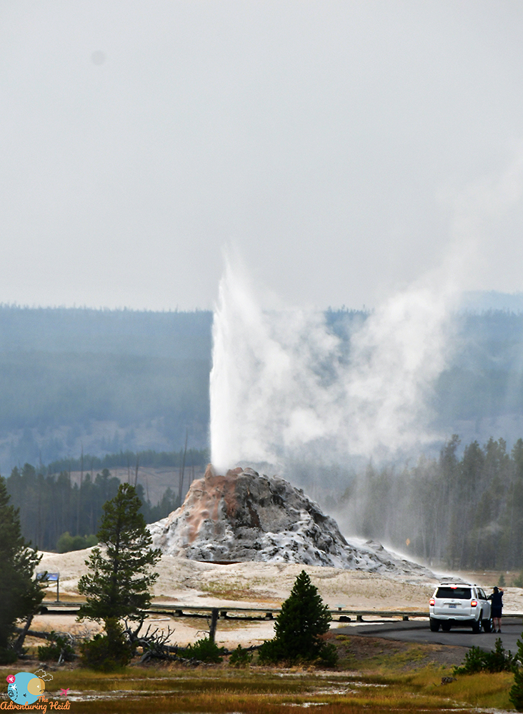 Steamboat Geyser is the world’s tallest geyser, but can be very unpredictable, going quiet for decades and then erupting again. There was quite a crowd camped out, waiting for the next eruption… literally, people practically camp out waiting for it (geysers have some hardcore enthusiasts, which is a total retirement goal of mine now!). Though it would’ve been lovely to see, I didn’t have days to spend sitting on the boardwalk. Turns out, Steamboat would erupt the next day – luckily for my car’s paint, ha!