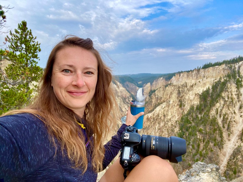 Luckily my early morning (it was 7:30am, not too early) meant I got to spend some solitude looking out over the Grand Canyon, with steaming thermal features on the walls, and the Lower Falls in the distance. I sipped my tea and took photos as the sun rose higher in the sky and the lighting changed. By the time I left about 8am, the crowds had thickened, and my solitude was ending.