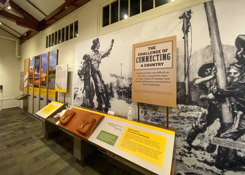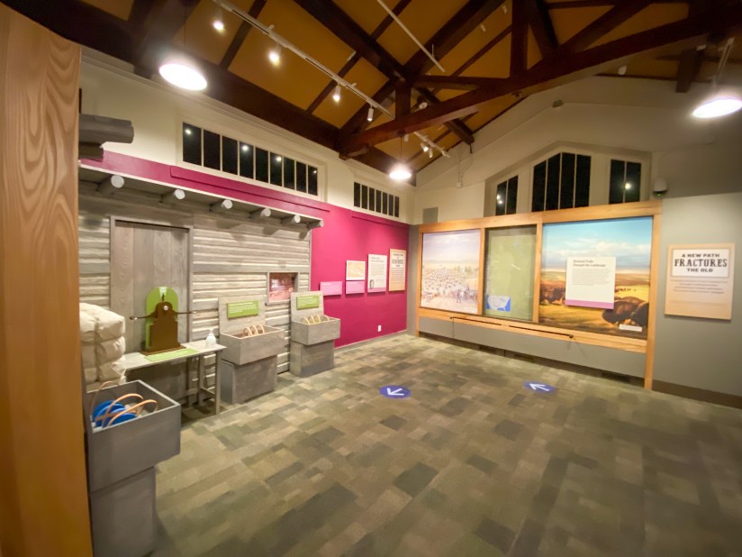 The exhibit was a lot of fun to explore. There were a lot of interactive activities such as writing messages to fellow travelers Pony Express style, an Oregon Trail mad libs, a board where you could write what trail job you’d have, and an activity around trading and making fair deals.