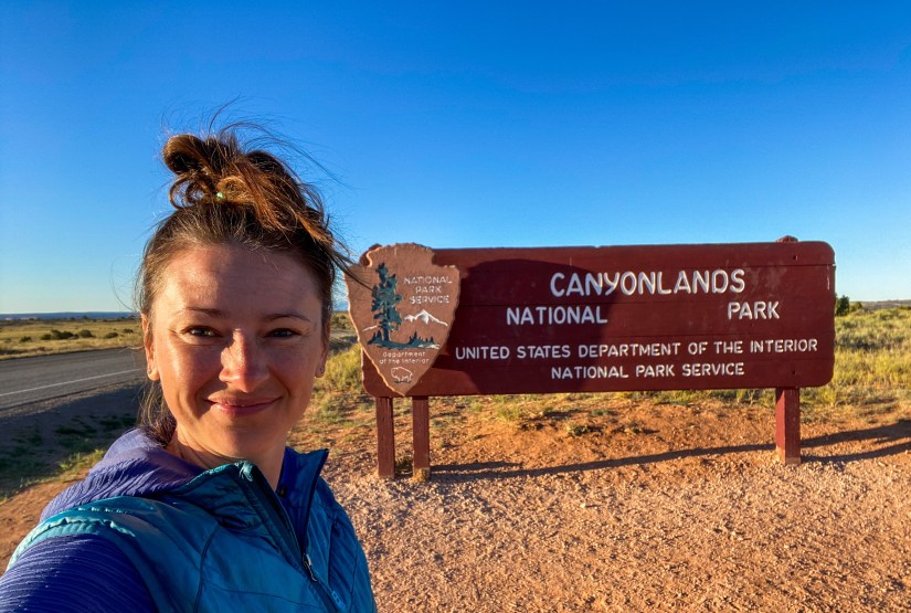 Sometimes things sound like a really good idea until they’re not. When initially planning the trip I decided I wanted to photograph Mesa Arch in Canyonlands National Park at sunrise, which involves a crazy early morning and waiting in the dark. Then I finally got smart, realizing I did not want to fight the tripod masses for a spot in a really tiny area. Alas, instead of a 3:30am wakeup, an alarm was set for 5:30am. Still a very early day for Sarah and I, but with hearing of hour-plus long waits to enter the park, we knew our early morning would be worth it.
