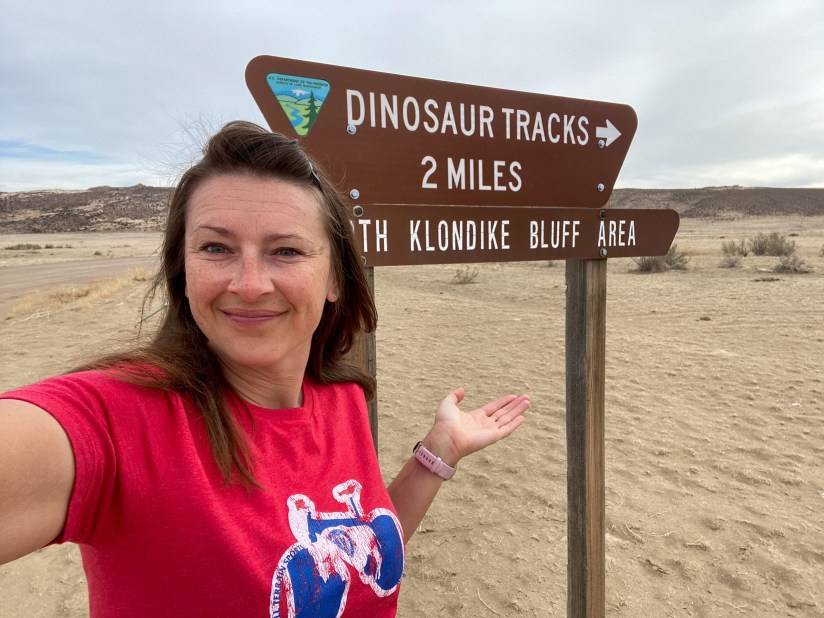 All good things must come to an end, and alas so did this little desert adventure. I got an early start thanks to my seven or so hour drive back to Laramie. But if there’s one thing I never do, it’s leave the Moab area without visiting my favorite dinosaur tracks at Copper Ridge at North Klondike Bluff!! It is just a short jaunt off of the highway north of Moab, with a quick walk up a hill.