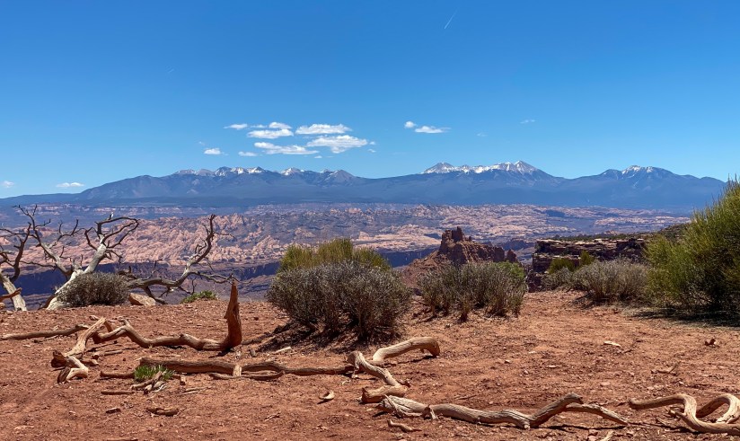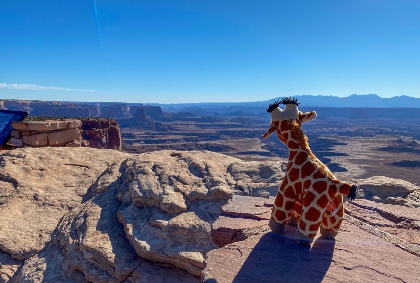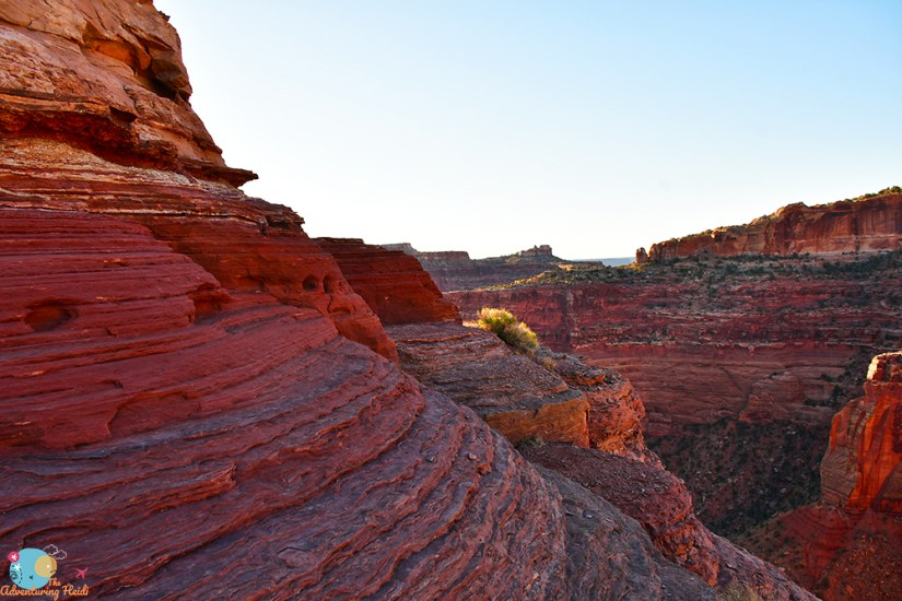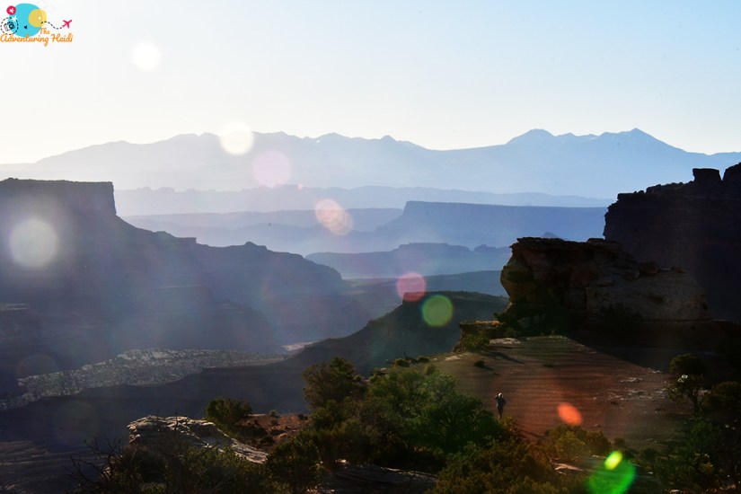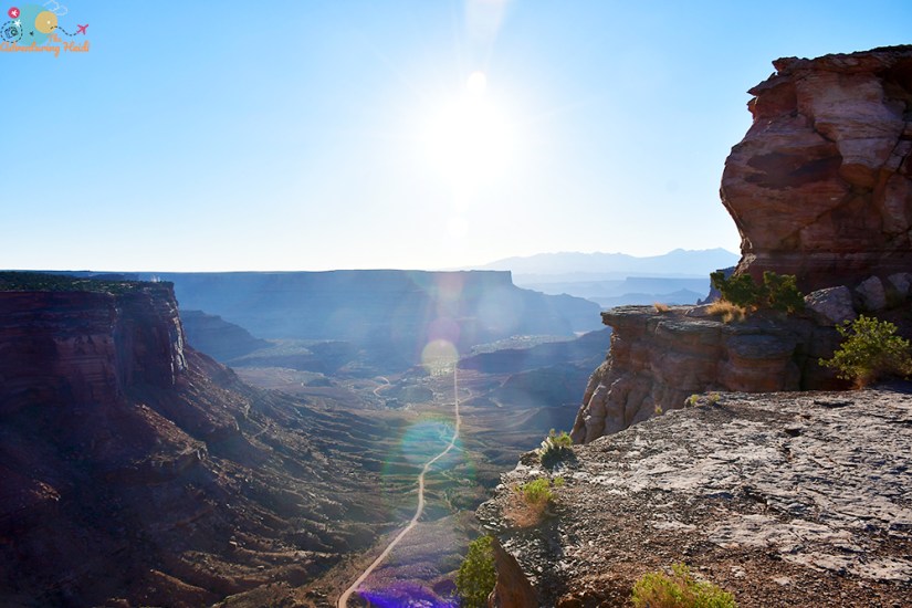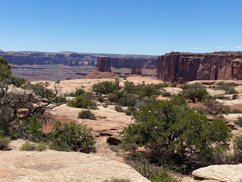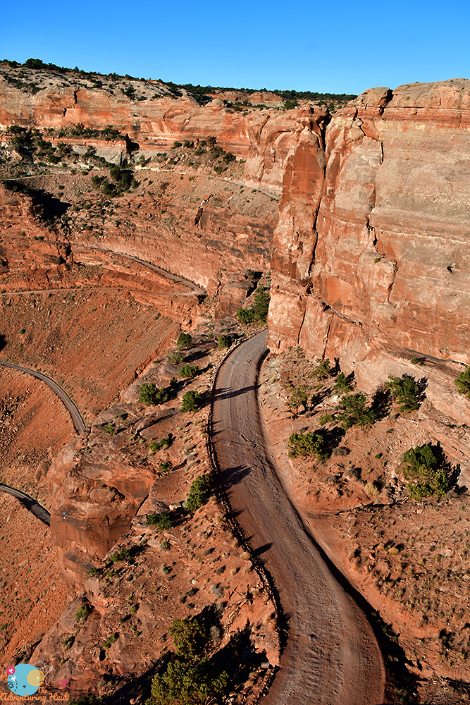 Schafer Canyon Overlook was our first stop and we spent lots of time taking photos and chatting with fellow travelers about camping and things to do and see. The light was challenging somewhat for photos, but the haze and sun was also creating lovely layers. The views of White Rim Road weren’t half bad, either!