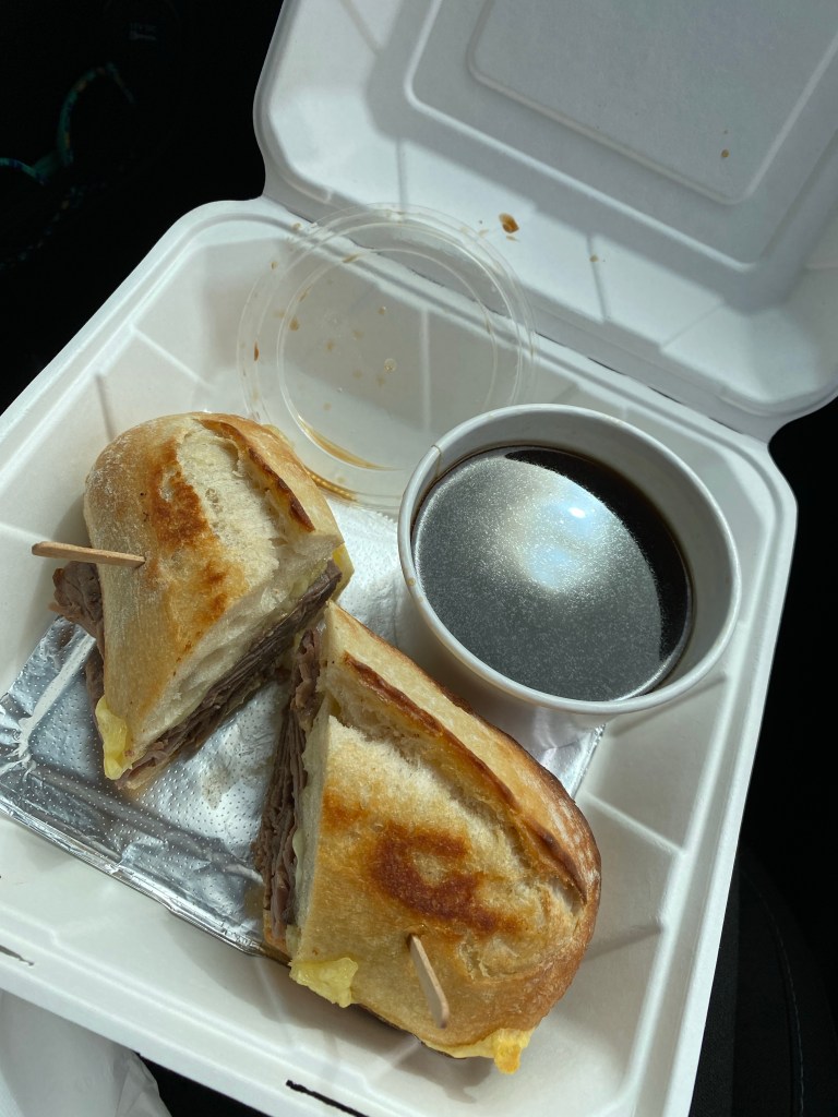Bridge scandal aside, we worked up an appetite, so I found us a lunch place in Port Angeles so we could refuel, take in some coffee, and get prepared for a busy afternoon. I decided on Toga’s Soup House Deli. They were closed to indoor dining, but we were able to zip through the drive through and then eat in the car. I opted for the French dip, which was probably the best one I’ve ever had, and Janice got the reuben. We also got cookies and plenty of caffeine. Like the adults we are, we ate our cookies first if you were wondering…