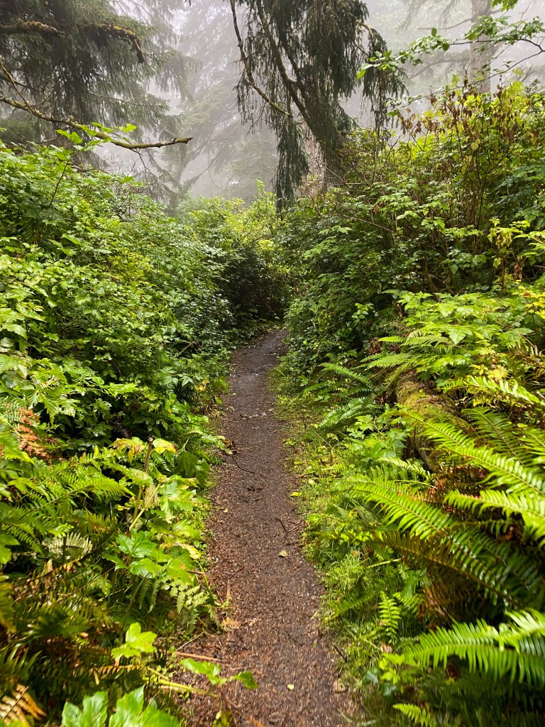 Our first stop for this non-disappointing trip at Cape Disappointment was North Head Lighthouse. We suited up for the cold rain (yay for the emergency umbrella I randomly had in my car that we brought along), and I paid at the automatic machine for the “Discovery Pass,” which is the Washington state park fee. We mistakingly took the North Head Trail, but I realized fairly quickly that we were heading away from where the lighthouse should be.