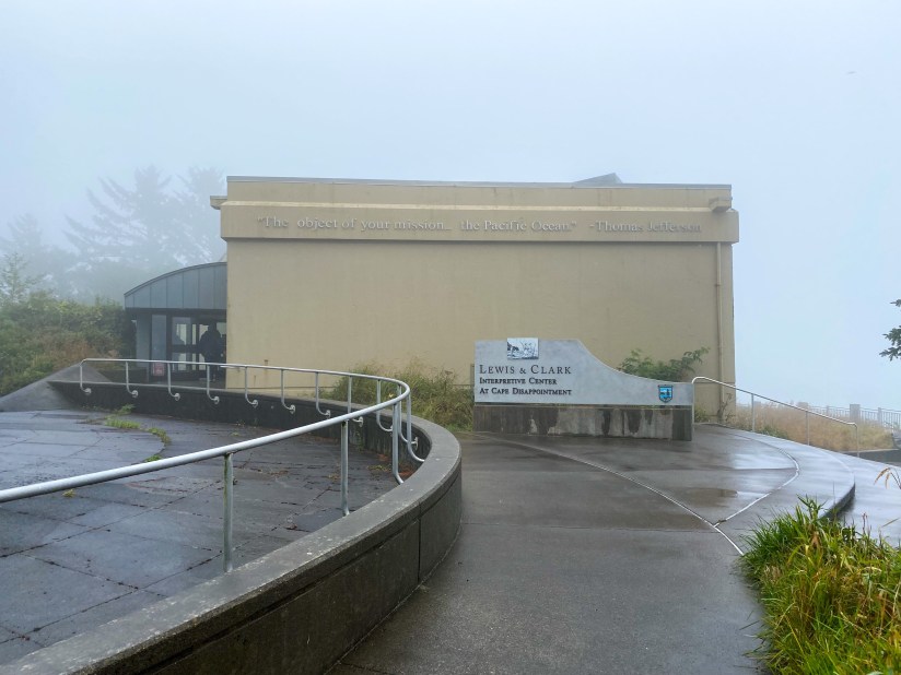 Our final stop in Cape Disappointment State Park was the Lewis and Clark Interpretive Center. It took a bit of wayfinding (we accidentally took a sketchy one lane road up the hill to the accessible parking area), but eventually we made it. The main parking lot does require an uphill walk to the center.