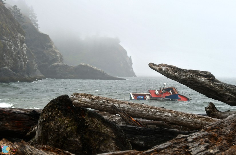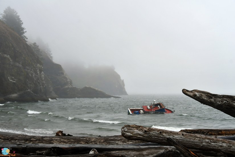 Next up was a visit to Waikiki Beach (no, not the one in Hawaii, like Google Maps tried to send us to when I typed it in). I had fingers crossed we’d be able to see the Cape Disappointment Lighthouse. Alas, the fog was way too thick; instead we got to see a fresh shipwreck! Waikiki Beach is thought to be where Clark of Lewis & Clark fame found the Pacific Ocean in 1805. But way is it named as such? Well, a Hawaiian sailor’s body washed ashore here in 1811. The more you know.