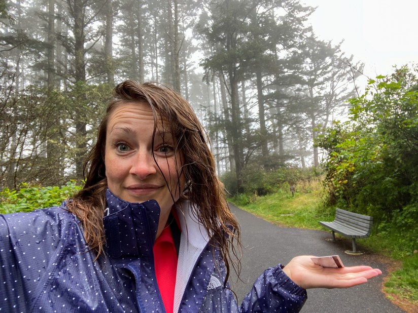 Our final day, and we were sad. The weather decided to match our mood, and it was pouring rain as we stepped out of our cozy room at Ocean Shores Resort. Such melancholy 😦