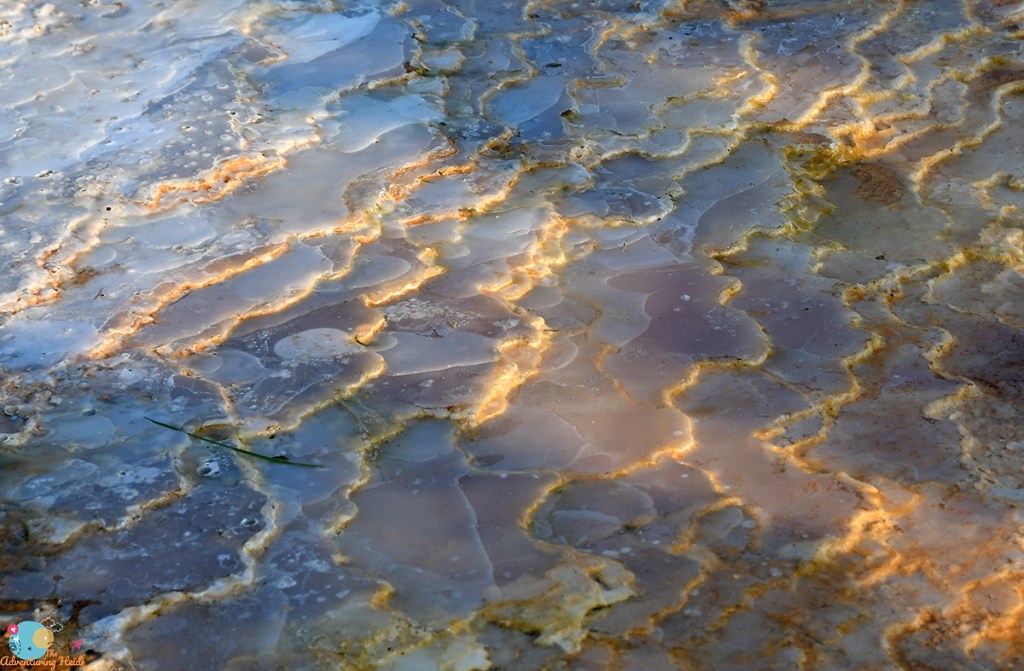 I have a degree in microbiology, and while my concentration was on the human pathogenic microbes, I appreciate ALL bacteria… especially those that can grow and thrive in conditions that humans cannot. Therefore, I really REALLY get nerdy about bacterial mats and colonizations of travertine. No apologies for the following series of photos! (Honestly, if I could do it all over again, I would’ve double majored in microbiology and geology, and focused on extremophiles living in geothermal environments!)