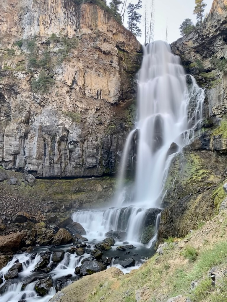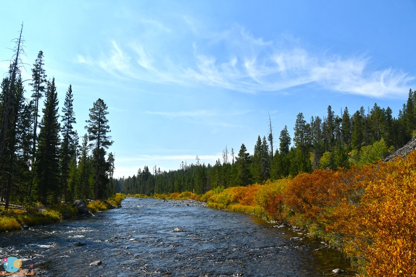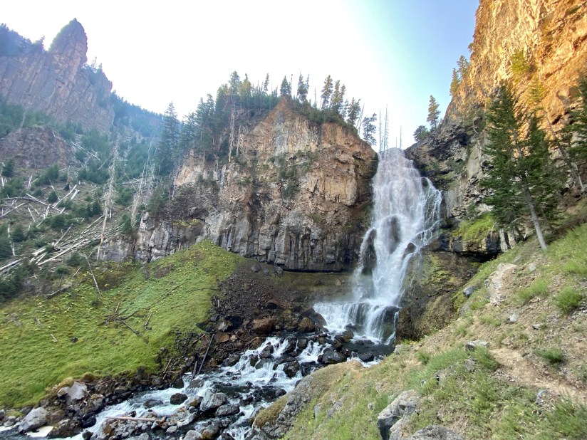 I wanted to see Tukuarika Falls near Sheepeater Cliffs (which I cannot get enough basalt in my life anyways, so even without a waterfall I’d be making a stop). I had no idea this picnic area would be so crowded, but I secured a parking spot, and took off on the short 1-mile round trip to the falls along the Gardner River. This short walk is well worth it, especially in the fall months as the willows blaze yellow and orange.