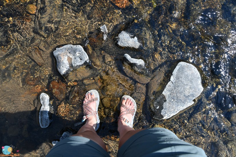 I stashed my bike in the trees, locking it to one, ditching my cycling shoes and helmet with the bike (which lead to the occasional thought of “what if someone takes my shoes?!” as I was hiking). I brought my trail running shoes in my pack which I changed into. Hiking poles probably would’ve been nice for the steep, sometimes loose, descent, but I survived. I probably didn’t need to wear cycling shoes, but I’m an addict to being clipped in, so there you have it.