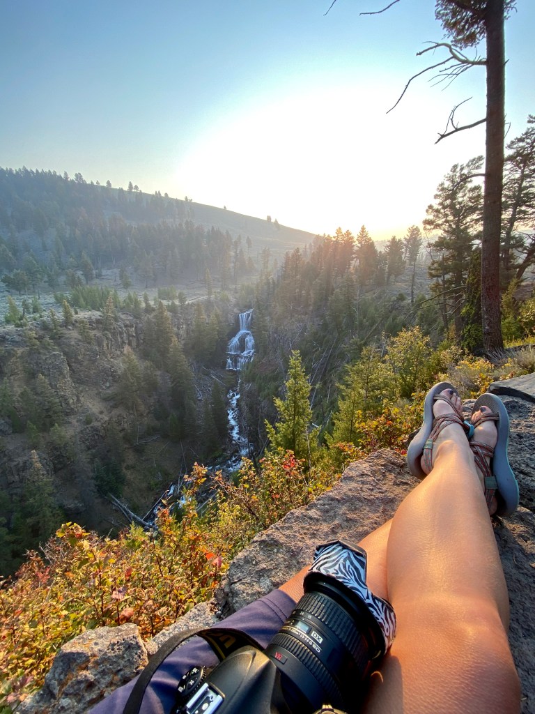 Osprey Falls is just… wow. Really no words (except swear words apparently). It is just such a magical place. I say every waterfall is my favorite, but legit Osprey Falls is in the top of my list. If I had a choice, I would’ve never left that spot. I took my time, finding the perfect rock to create a comfy spot for photos, a snack, and just spending time in solitude with the thundering falls on the Gardner River. (I did get over thirty minutes to myself in this spot, another bonus of an early start, not to mention great lighting for photos!)