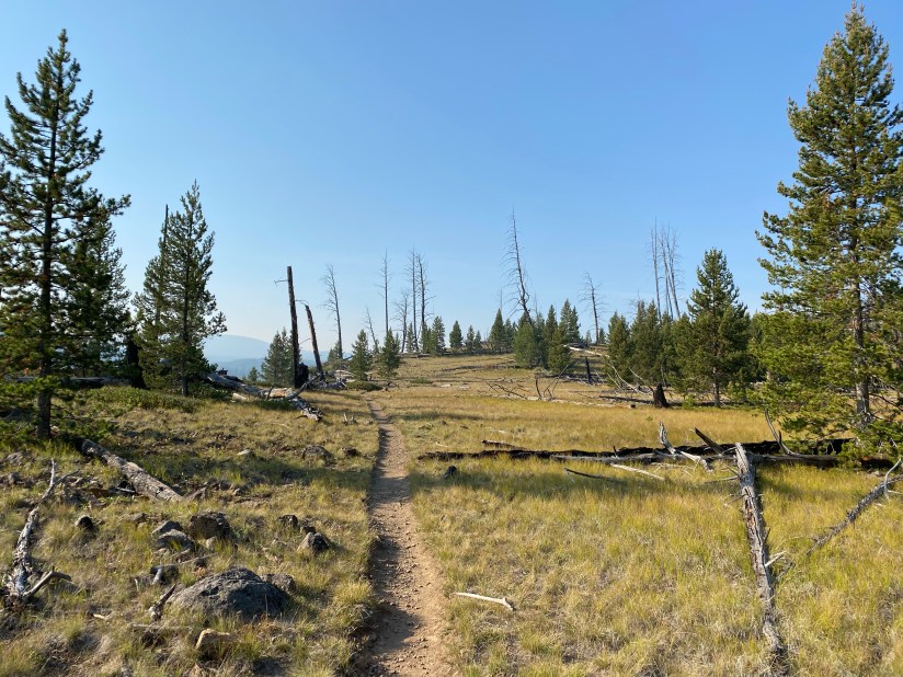 I could not stay forever, so I sadly bid my new favorite waterfall goodbye, and started the steep hike out of Sheepeater Canyon. I am happy I got an early start as I could not imagine doing the climb in the heat of the day! Near the top I ran into the gentleman I had to talked to at the trailhead, and he asked about my Spot device and we enjoyed a nice chat before we continued on our separate ways. I was happy to see my bike (and shoes!) where I left it, and began the ride back. The first hill heading back is a beast, and I grunted up it on the bike, thankful for the mostly downhill miles on the rest of the way.