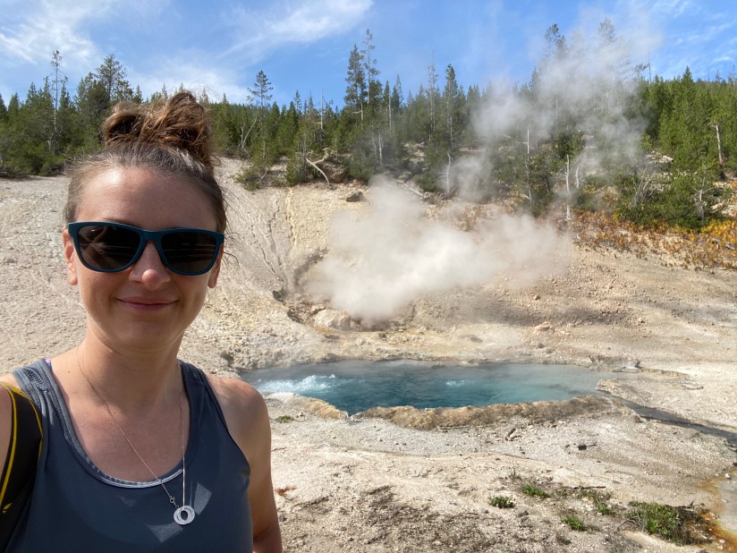I opted to stop at Artists Paintpots later in the day, and headed straight to my campground for the next three nights at Madison Junction. Madison is nicely located (aside from the junction being a traffic nightmare in the evenings), especially if chasing thermal springs and geysers are your thing as it is close to the geyser basins at Old Faithful, Midway, and Lower. I settled into my campsite, G252, early. I learned this year that personal showering devices are allowed as long as you collect all the wastewater and dispose of it in the campground sink or toilet (I wish I would’ve known this last year), so I used my Rinse Kit to wash my hair and collected all the water in a huge plastic tub I used to organize items in my car. I knew I would have to to go eight days without a proper shower, but I’m the type that if I can have clean hair, I feel clean in general. Then I finished setting up my tent and just relaxing and resting after the morning’s hike out of Osprey Falls.