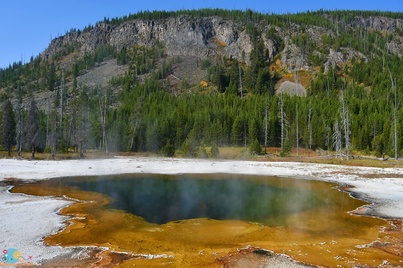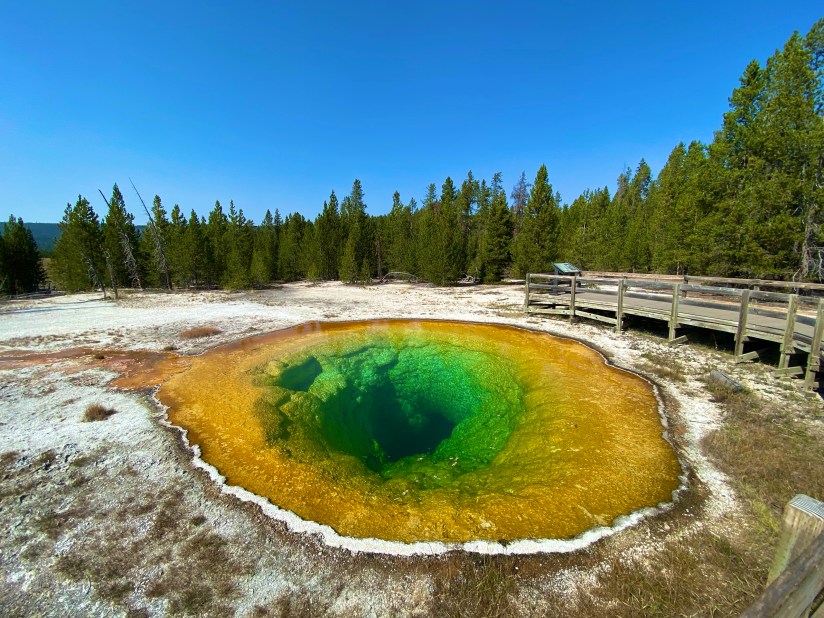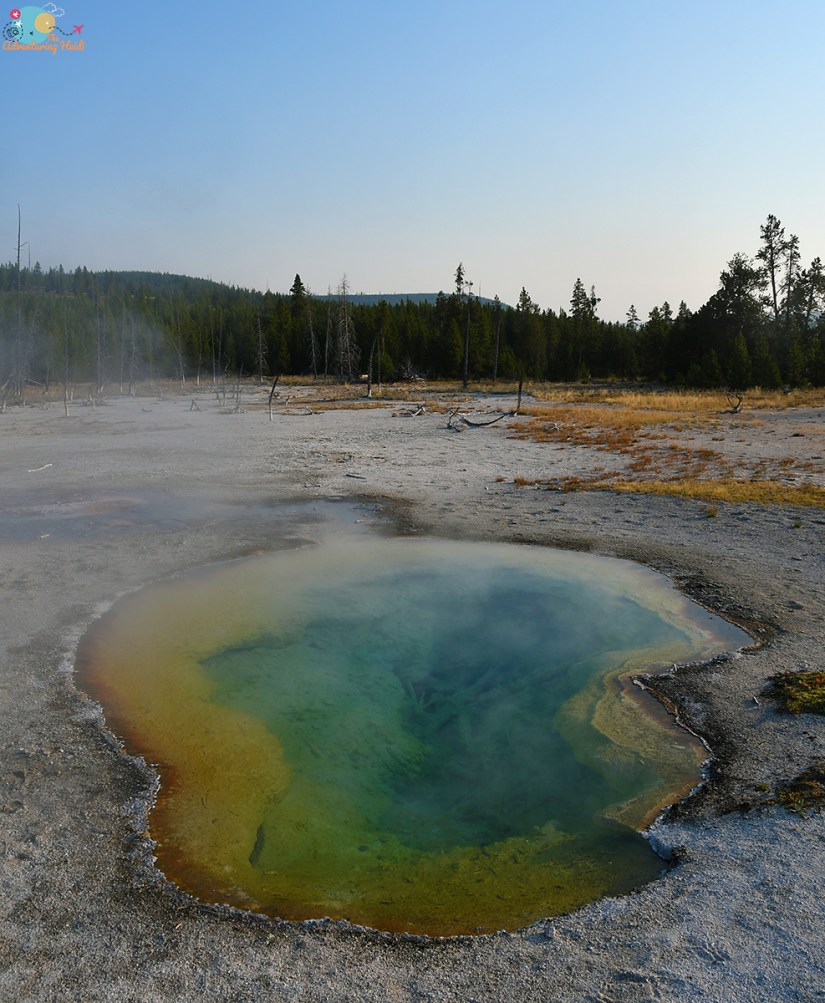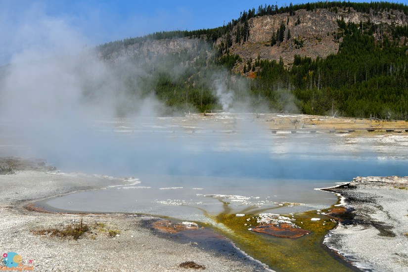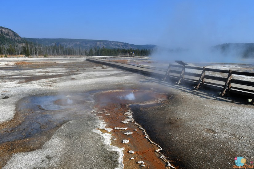Previously I had walked up this part of the trail to Artemisia Geyser, so I looked forward to going the whole way. I was treated to following a couple who stuck their hands in multiple hot springs, learning that they are all really hot at the beginning before completing the rest of the hike in solitude. The sun was not in an ideal spot for photos, so I mostly strolled along and enjoyed the sights without a camera in my face.
