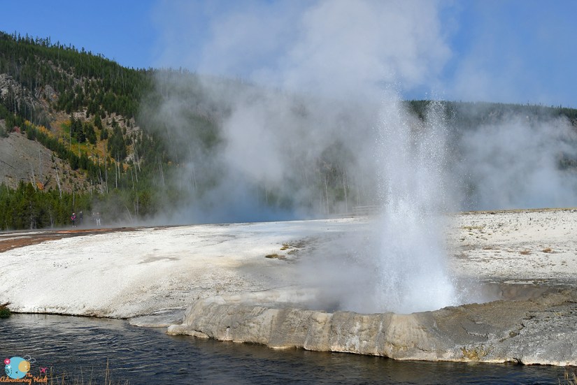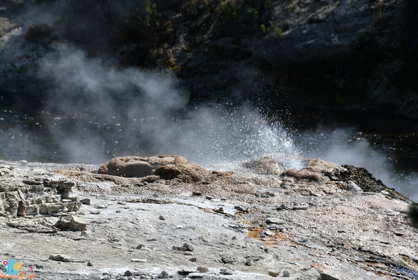 Riverside Geyser is very predictable, with an interval of about 6.5 hours. Though I had debated coming to watch it, I definitely recommend making the time for it as its unique and offers a chance at a geyser-bow photo opportunity.