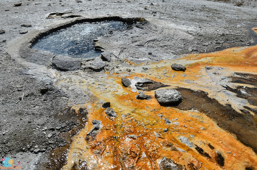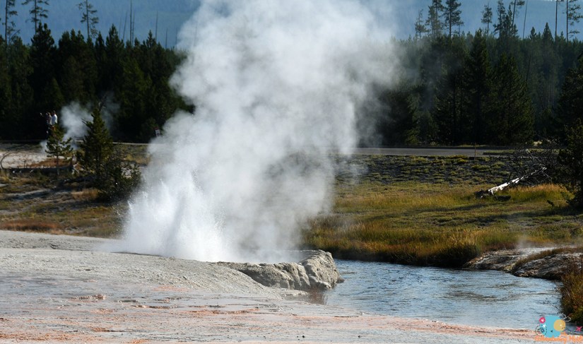 I made my way over to Grand Geyser which was gathering a crowd, and found a spot to sit on the boardwalk above the run off channel (and in the shade!). My biased review that is if you’re going to see a predicted geyser in the frontcountry, you should opt for Grand, as it is absolutely spectacular! Yes, more spectacular than Old Faithful!!!