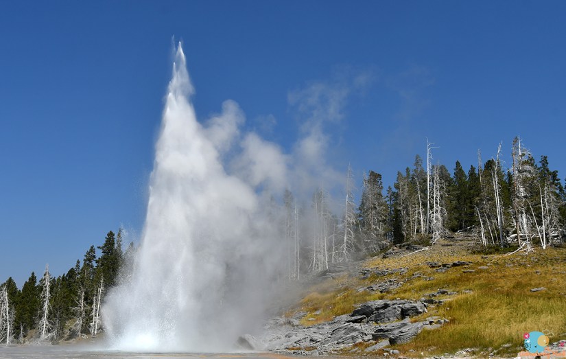 Oh Castle… I baked in the high altitude Wyoming sun for 90 minutes and you never erupted, just a few splish splashes as the crowd waited impatiently. Castle is becoming less predictable, and it never did blow. Thankfully Beehive Geyser did give everyone a show in the distance! Yay, new geyser eruption for me!