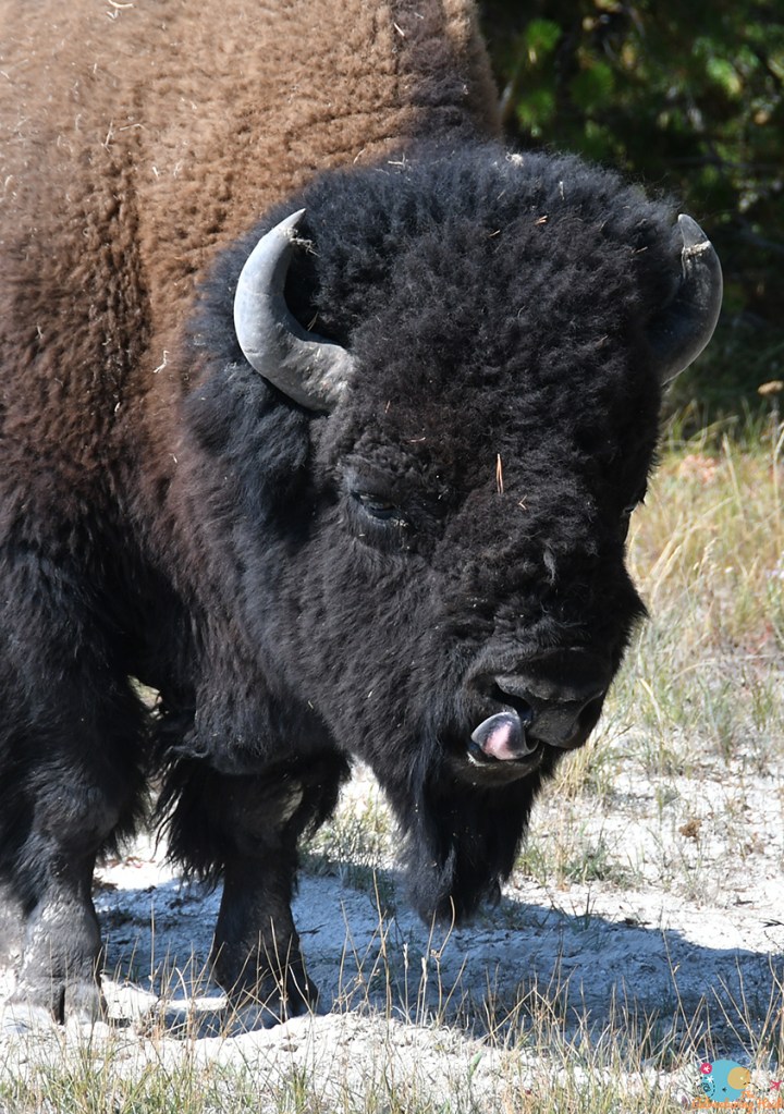 I snapped a photo of the geyser prediction times and was pleased to see I would be able to geyser chase some new ones. I was in the window for Castle so I yogged in that direction, with one detour around a bison (the park rangers don’t mess around in Disney World, they make sure you don’t get anywhere near the fluffy cows).