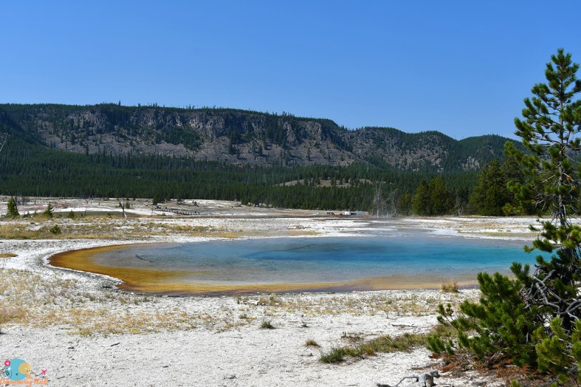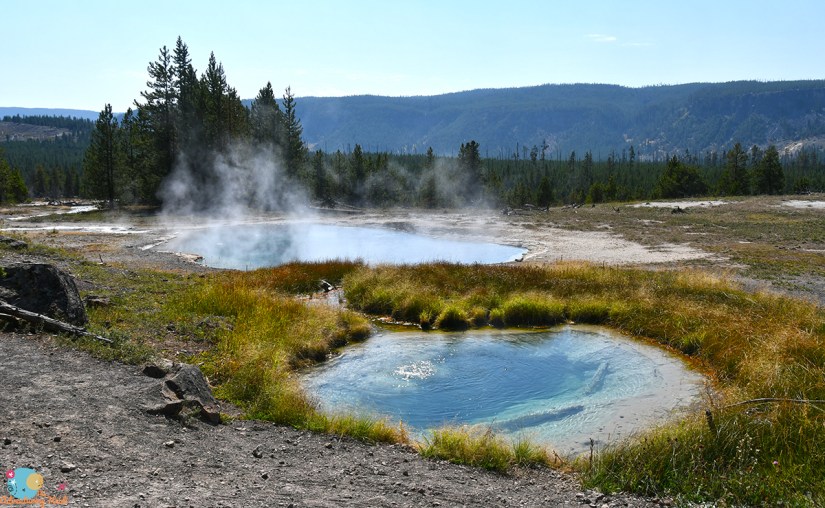 My feet were tired and I was battling my blisters from the day before. I was hot, and just overall tired, and debated going to see Riverside Geyser. Then I realized it was closer to hike from the Biscuit Basin parking lot to Riverside Geyser than to get there from Old Faithful, and that I shouldn’t wimp out on my final geyser chase of the day. Back in the car I jumped, and drove up to Biscuit Basin where I nabbed a parking spot and crossed the highway.