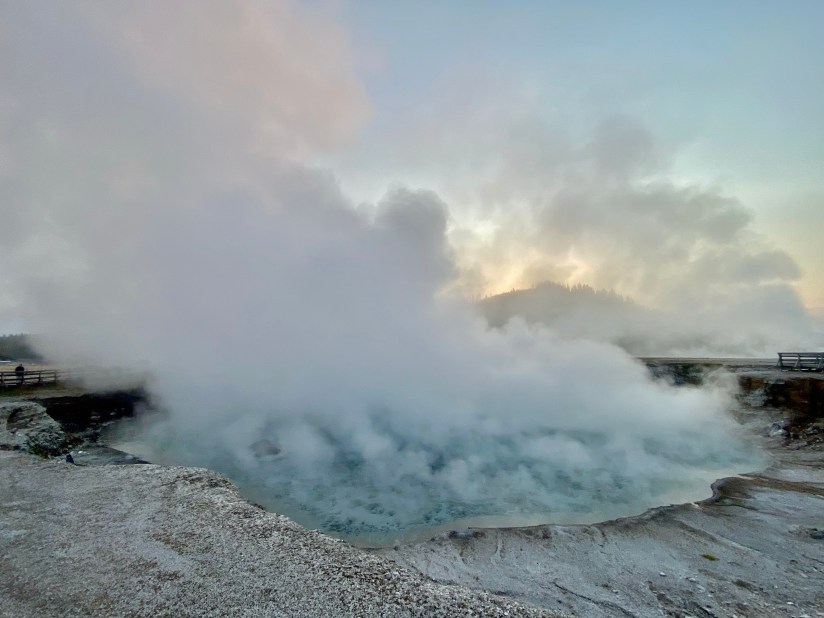 It is geyser basin day! Chasing all the geysers, all day long! Naturally, I got an early start, as early mornings in Yellowstone are my favorite. First, the landscape is all steamy, and second, the record crowds would be a bit less (September 2021 would set an attendance record I would come to find out).