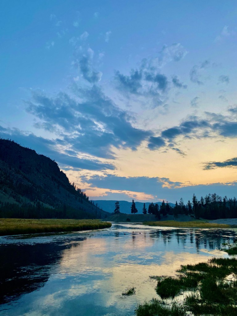 This would be my final night at Madison, which I was a little sad about as it is in such a great location for all my geyser chasing, but I also really didn’t enjoy my campsite too much since it was so close to others so I was happy to make a change and hopefully have a bit more space and privacy. I chatted with the gentleman from Flagstaff across from me who told me how he comes to Yellowstone twice a year for two weeks at a time (so jealous!), and then delved into dinner (which I didn’t photograph as the packet of chicken I used made it not look appetizing but it was delicious otherwise!). I did take a quick walk down to the Madison River, but didn’t stay long as someone was blasting some music ridiculously loud and it was ruining the whole experience (and to be fair, the sun set). I think there was still traffic backed up trying to get into West Yellowstone by the time my head hit the pillow…