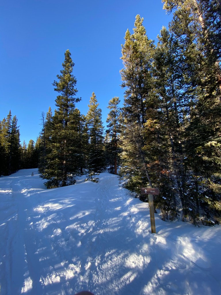 Pulling into the trailhead I was a bit surprised to see how full it was, not realizing that even in the middle of winter this is a busy peak. We geared up with microspikes, made final potty runs, and hit the trail at 8:09am on the standard east ridge route. (It was weird to be starting a 14er so late! In the summer months early alpine starts are needed to beat dangerous thunderstorms and lightning above treeline.)