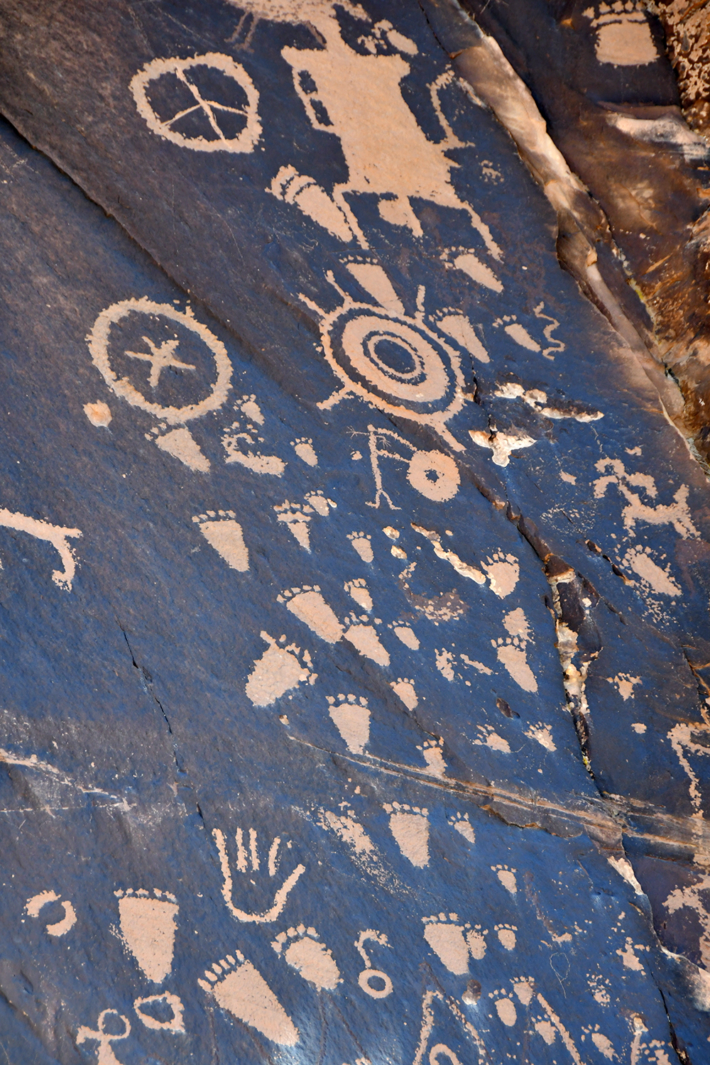 On the way back out to the highway we made a quite stop at Newspaper Rock State Historic Monument. Here is one of the largest collections of petroglyphs in the country, and is a nice spot to stretch the legs again (apparently my motto of the trip… stretch all the legs all the time, especially the ouchy ankle) and use the restroom. What I found most interesting is the petroglyphs of feet all seemed to have six toes…