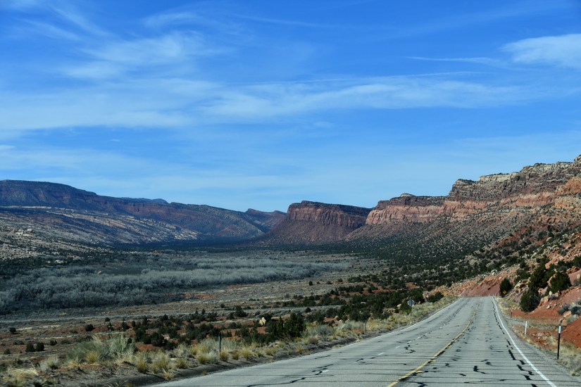 Needless to say, we rolled into Monticello with some sips of gas to spare, but sadly not enough time to make the Natural Bridges National Monument visitor center before closing. Bruce called to let us know they were freed of the snow and continuing on their adventure, and Eric let them know we fed the truck (and we filled up gas can, too, so we wouldn’t have this happen again). Eric had seen a Taco Time on Google Maps, but we realized it was closed permanently, so we turned towards the monument.