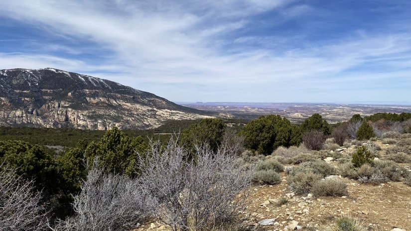 In order to save on gas and hopefully get a time cushion to make it to the Natural Bridges National Monument visitor center before it closed at 4pm, we eyed a forest road that turns south from UT Highway 211. I announced, “it’s paved!” and Eric quickly turned. “Oh, it’s only 10 miles to Monticello, this is great!” he announced andaway we went on this seemingly deserted road that took us from the desert landscape into the Manti-La Sal National Forest and trees.
