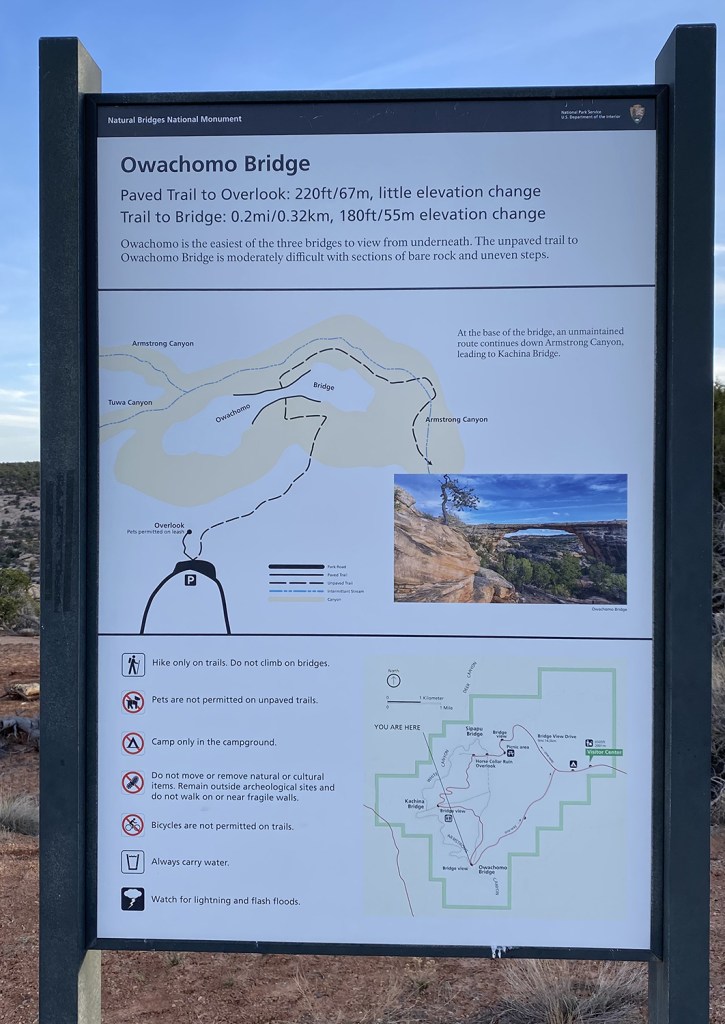 To explore Natural Bridges, you follow a one way scenic loop that has various viewpoints and trailheads. We stopped at Sipapu Bridge viewpoint, and I made some sandwiches since we had not eaten lunch yet. Not the ugliest place I’ve made a sandwich by far!
