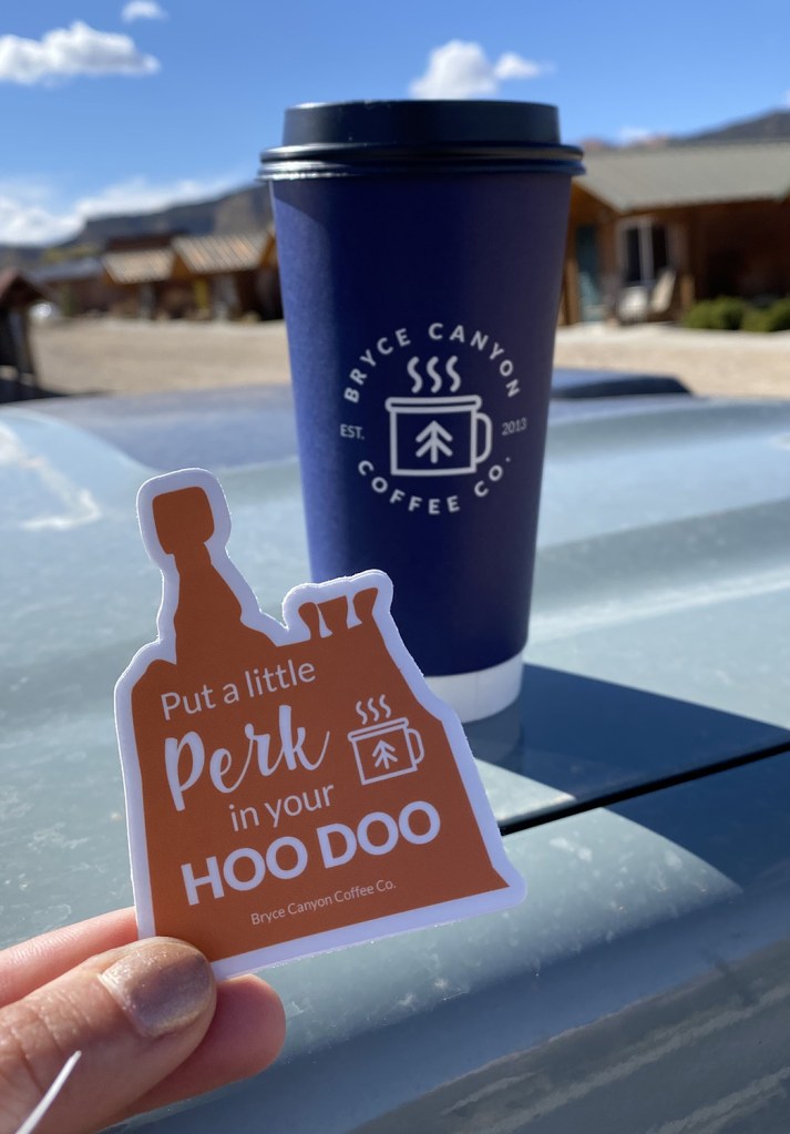 Scenic viewpoint-ed-out for the day, we headed back to the visitor center to get our special prize for the Hike the Hoodoos program. There was a big line for the ranger, and we watched a woman get sworn in as a junior ranger after being grilled by the real ranger on every page of the book (eek, becoming a junior ranger is a serious endeavor!). Then the woman in line in front of us took to asking about ten times over the best area in the park to view sunset, and the ranger, bless her heart, patiently explained each time that the park faces east, and therefore is better at sunrise (so much patience for the questions!!). Finally it was our turn, and we told the ranger where we hiked and flashed our GPS tracks. We were rewarded with a special “I Hiked the Hoodoos!” decal and were probably the easiest customers of the day!