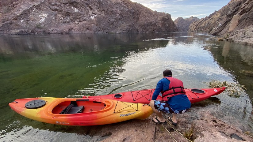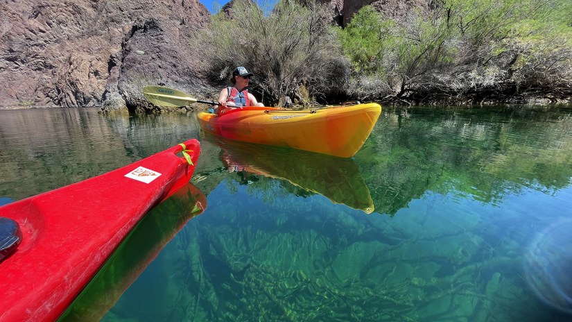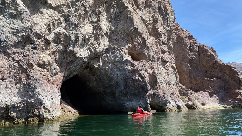 The next two days were dedicated to kayaking the Black Canyon of the Colorado River from the Hoover Dam to Willow Beach – about fourteen miles total. Part of Lake Mead National Recreational Area, thirty miles of the Colorado River are designated the Black Canyon National Water Trail. Numerous hot springs, caves, beaches, and camping opportunities dot the canyon walls.