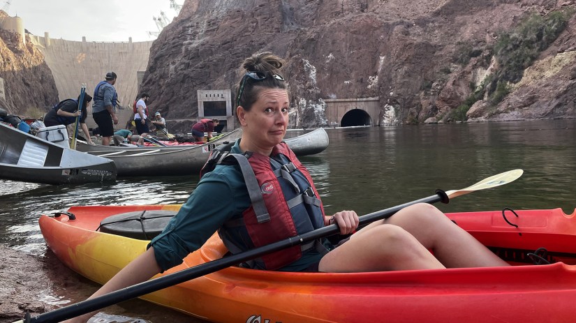 My fear of water is intense. I mean, I didn’t even put my face directly under the stream of water in the shower until I was 24 years old or so. I still don’t get in water over five feet deep. I think I’ve cried more times than not when getting on boats. I don’t like looking out of airplane windows while flying over the ocean even. So why exactly was I getting in a kayak in the Colorado River?