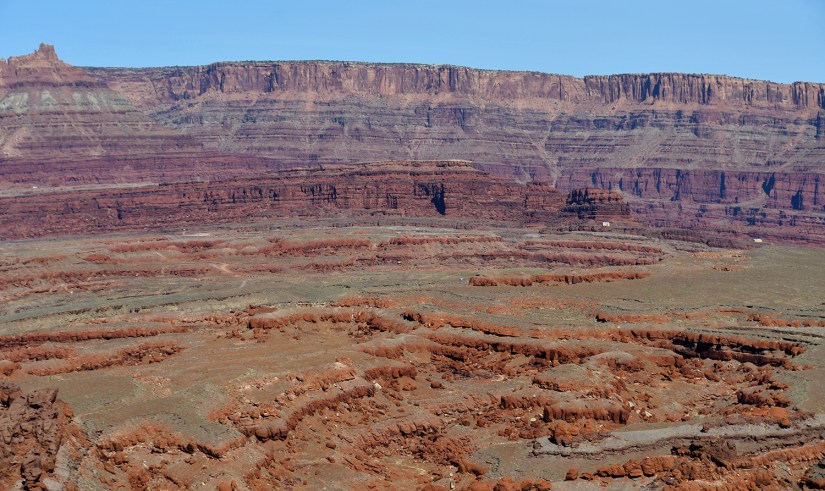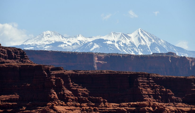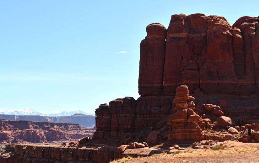 The trail dead ends at a point directly across from Dead Horse Point State Park. There is a trail where you can continue walking, but the exposure is super sketchy (says the girl that like ran up Angels Landing the day before…). We opted to turn around after a few photos and make our bouncy, rough way back to Moab.