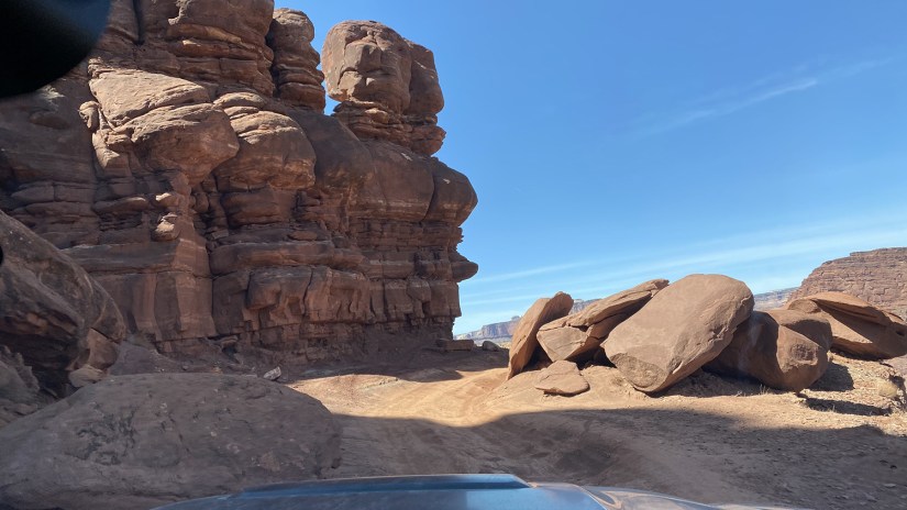 I’ve been out to Hurrah Pass a few times, most recently in May 2021 where erosion thwarted Fozzy’s third trip up the pass about halfway through. I was super eager to show Eric around some Moab terrain, and explore beyond Hurrah Pass (Chicken Corners is a bit too challenging for Fozzy).