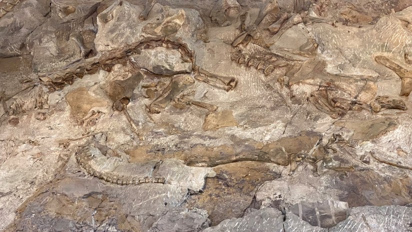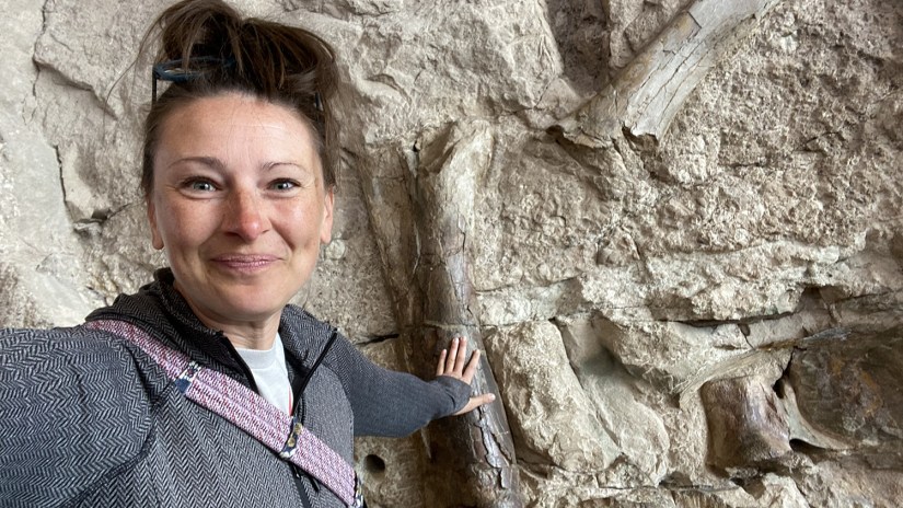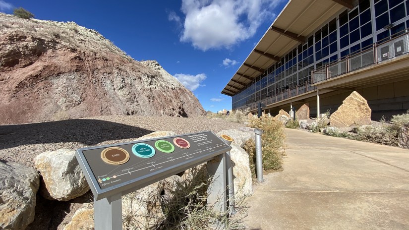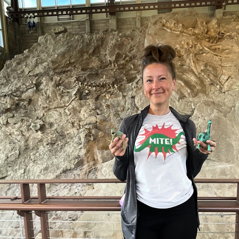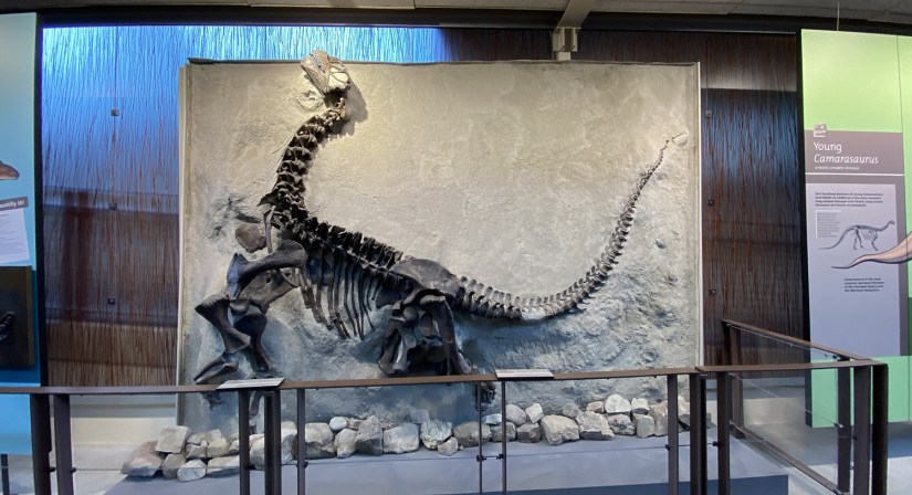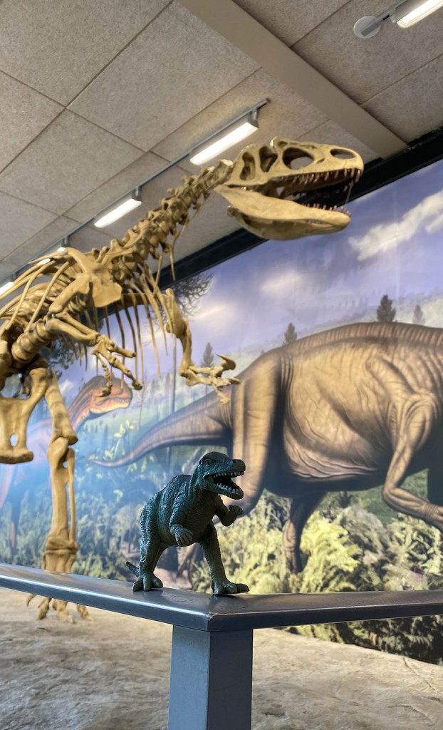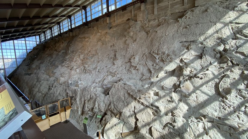 The Quarry Exhibit Hall preserves a “dinosaur logjam,” where many dinos perished in a drought and got washed down a riverbed. Really kind of morbid – even Eric pointed out it was weird I brought the Adventure Dinos along as they probably didn’t want to see all the dead dinosaurs, LOL! Over 1500 bones have been preserved here. There are also exhibits and several bones that you can touch. Overall, probably my favorite part was when I was photographing Mr. Allosaurus next to an allosaurus skeleton, and a little girl came up to me and matter of factly said, “Those aren’t real bones, they’re just casts.” Okay, I met my younger self, because I totally could’ve seen me doing that as a kid!