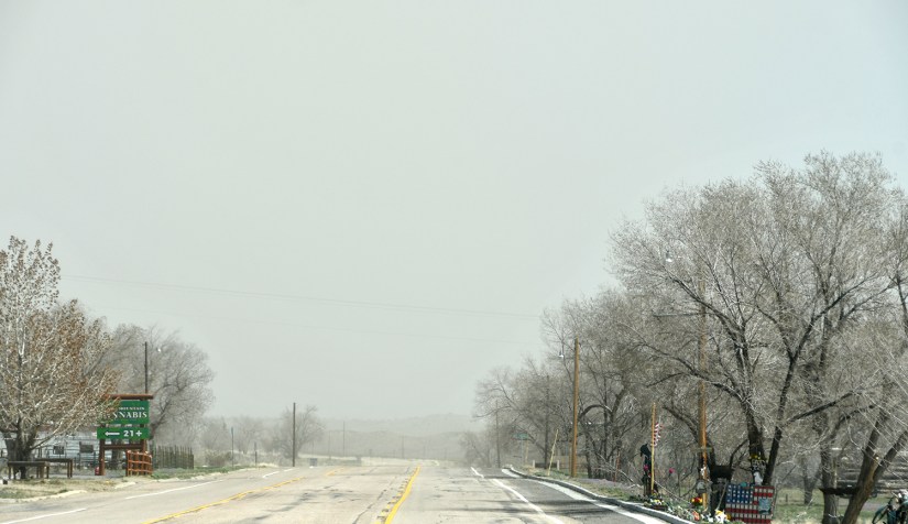 The drive back to Cheyenne across northern Colorado was long. I educated Eric on FM Light & Sons signs, which dot the scenery for miles upon miles leading up to Steamboat Springs. We drove through dust storms. We probably looked up random trivia. In Steamboat we stopped for some late afternoon coffee and gas before the final push home. And wouldn’t you know it, it was snowing hard at the Wyoming border…