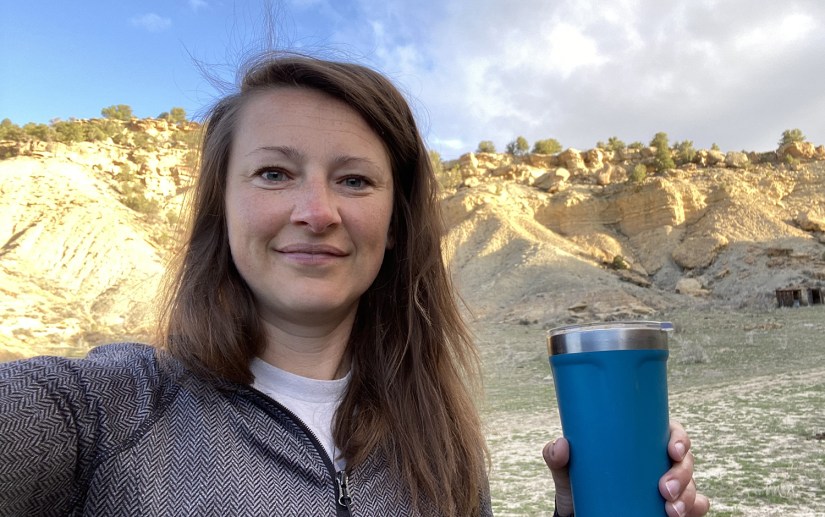 The hum of fracking machinery greeted us in the morning, along with another pretty view. We awoke with still no idea where we were, and maybe a little sad that this was the last morning of the trip. “I’m pretty sure some wild animal is living in my hair,” I mumbled as I struggled to wrangle the dreadlock of sweat, dry shampoo, and Moab dust that was forming on my head that was last washed many days and 15 kayak miles before.
