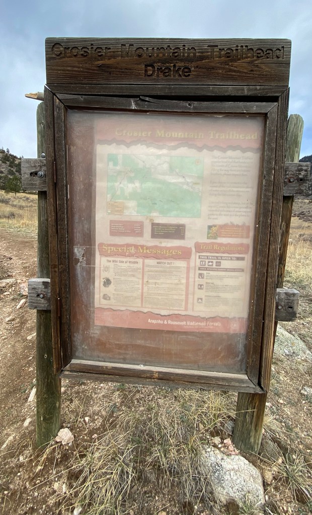 In an effort to explore more of my own area, I settled upon hiking up to Crosier Mountain, a 9,250 foot summit between Drake and Glen Haven. There are three trails leading up to the summit: Garden Gate, Rainbow (Gravel Pit), and Glen Haven (with their trailheads all called the same thing). Garden Gate was the closet when it came to driving since the trailhead is a handful of miles from Drake, and what I settled upon. This would be a roughly 11 mile day, which seemed gigantic once Tom and I got to thinking about it, but we stuck to the plan.